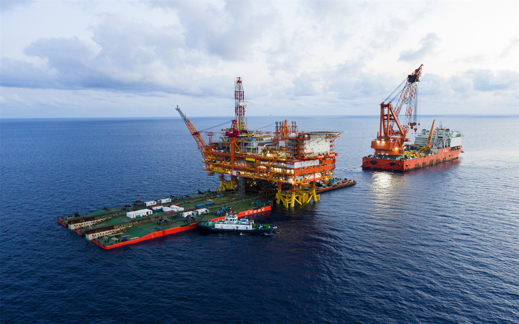 熟練運用高位浮托法、低位浮托法、動力定位浮托法等多種方式實現了開放海域、超淺水等全海域的浮托安裝作業,實現了世界主流浮托方式在中國的“大滿貫”。掌握了從9米到200米水深的全海式浮托安裝技術,形成了“全天候”的浮托作業能力。2013 年以來,先后完成世界上難度最大的浮托安裝、世界上運用“動力定位浮托法”安裝最大海洋石油平臺以及世界上運用“低位浮托法”安裝最大海洋石油平臺等全球高難項目。