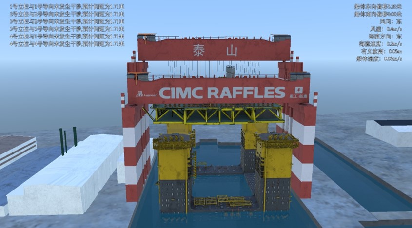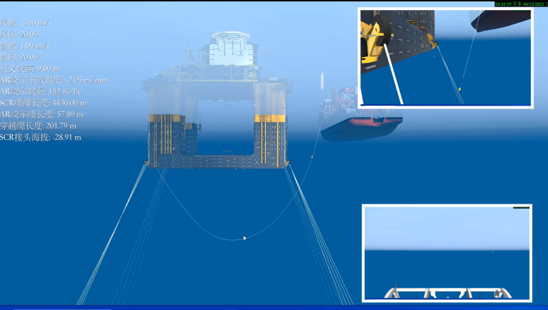 研發中國首套海洋工程安全作業仿真測試平臺,突破海洋工程作業風險識別、船舶多體耦合運動響應建模與實時解算、分布式仿真時空一致性等關鍵技術,構建海洋工程作業工程仿真技術體系,支撐國內首個海洋工程數字化中心的建設,具備海上吊裝、鋪管、浮托、動力定位、水下安裝與維修等典型作業仿真預演與評估、作業團隊協同演練以及人員培訓功能。相關成果已在文昌9-2/9-3浮托安裝仿真、渤中34-9平臺浮托安裝仿真、荔灣3-1平臺壓縮機吊裝仿真、東方13-2浮托仿真、流花16-2單點建造仿真、“深海一號”能源站項目半潛式生產平臺拖航/系泊回接/SCR回接/臍帶纜回接仿真等工程項目中應用。